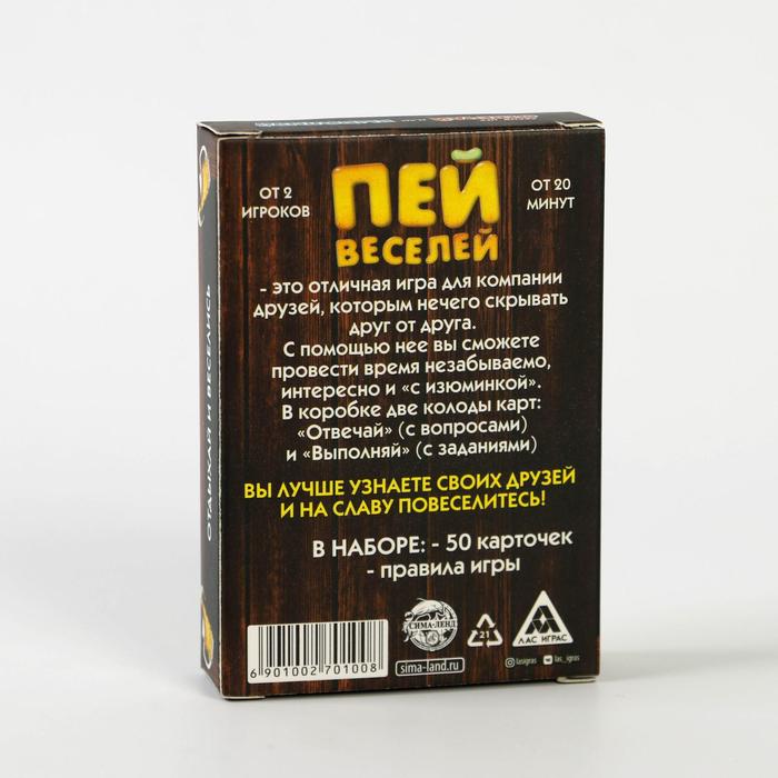 Купить игра для компании "пей веселей" 50 карт от 180 руб. с доставкой до пункта выдачи в Алексине. Интернет магазин ДекаМаркет. Оплата при получении.